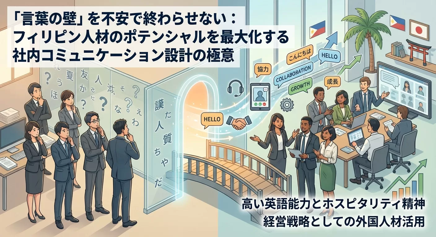 「言葉の壁」を不安で終わらせない:フィリピン人材のポテンシャルを最大化する社内コミュニケーション設計の極意 労働人口の減少が深刻化する日本において、外国人材の活用はもはや「選択肢」ではなく、企業の存続を左右する「経営戦略 […]