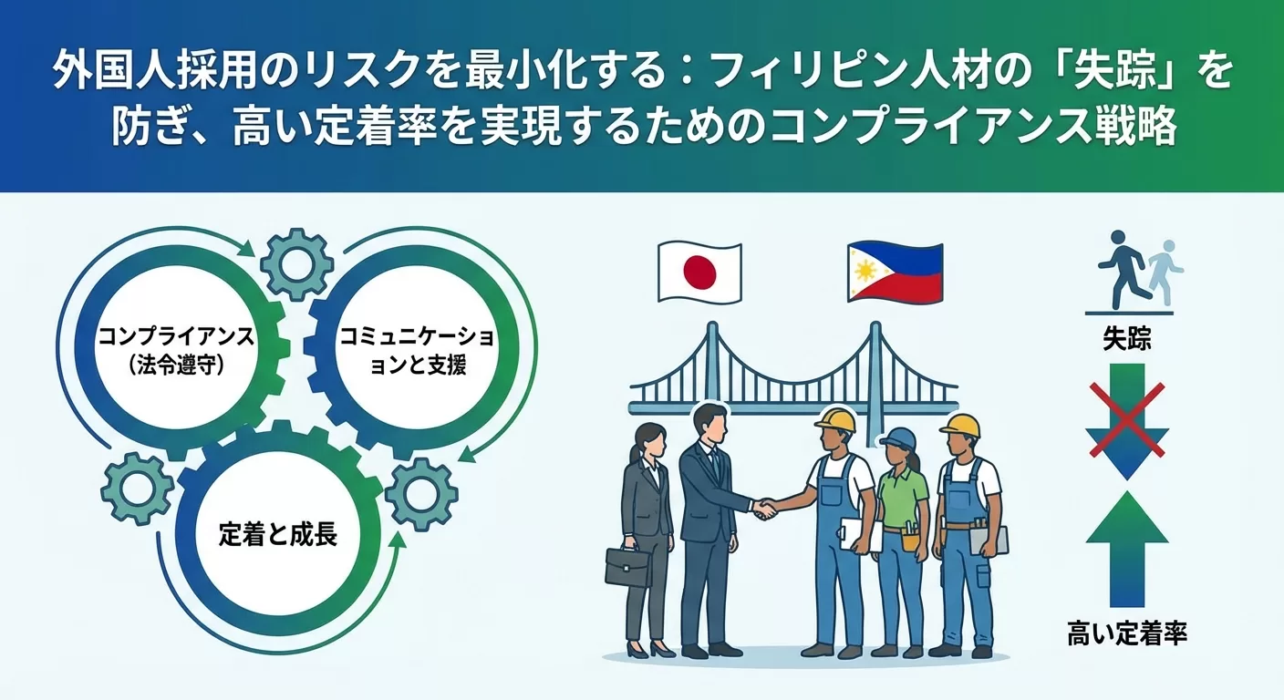 外国人採用のリスクを最小化する:フィリピン人材の「失踪」を防ぎ、高い定着率を実現するためのコンプライアンス戦略 日本国内の人手不足が深刻化する中、外国人材の活用はもはや「検討事項」ではなく、企業の存続を左右する「経営戦略 […]